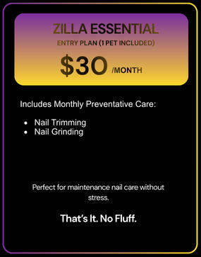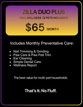 Nails, ears, teeth, paw care, and wellness maintenance every month.